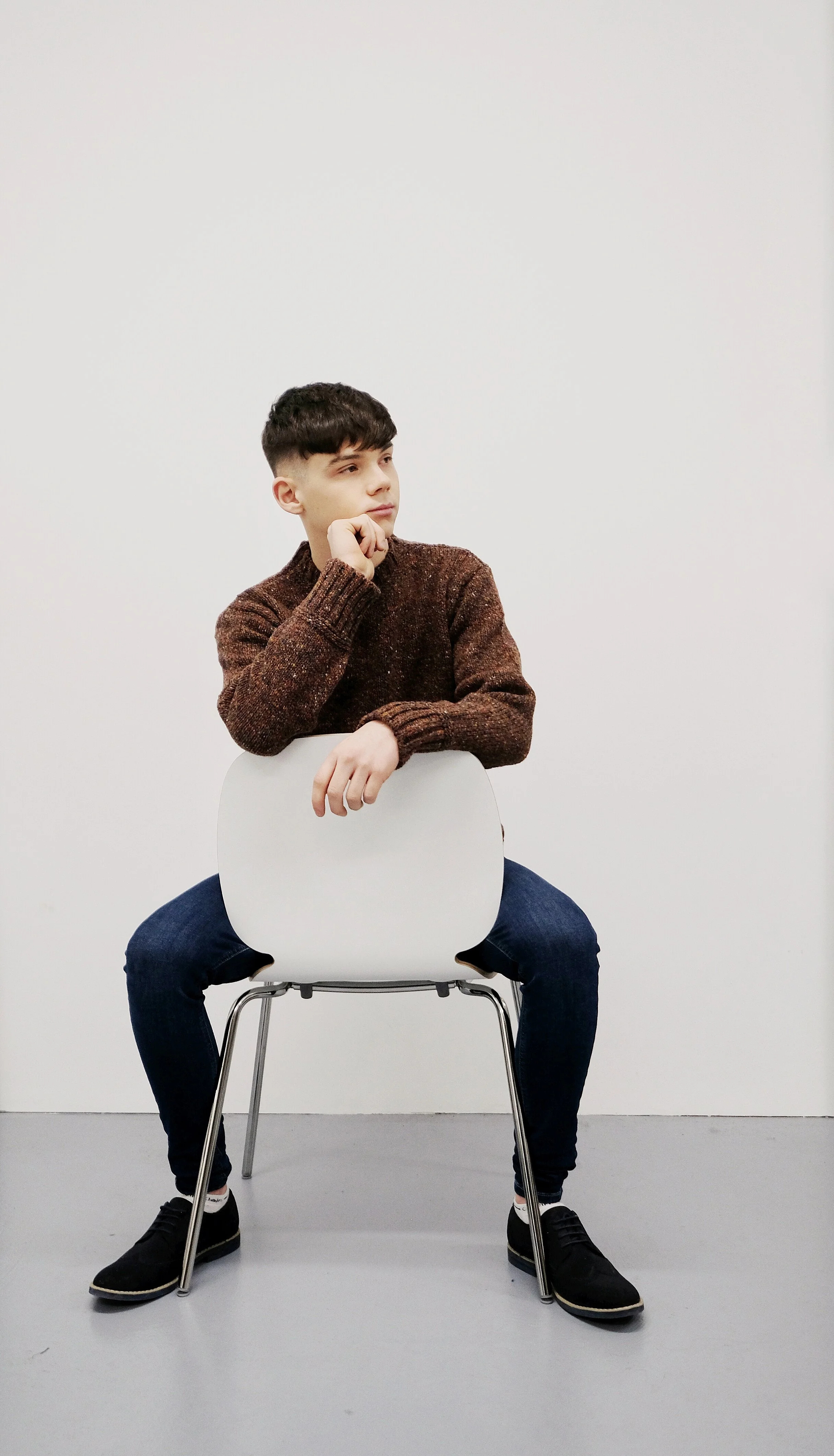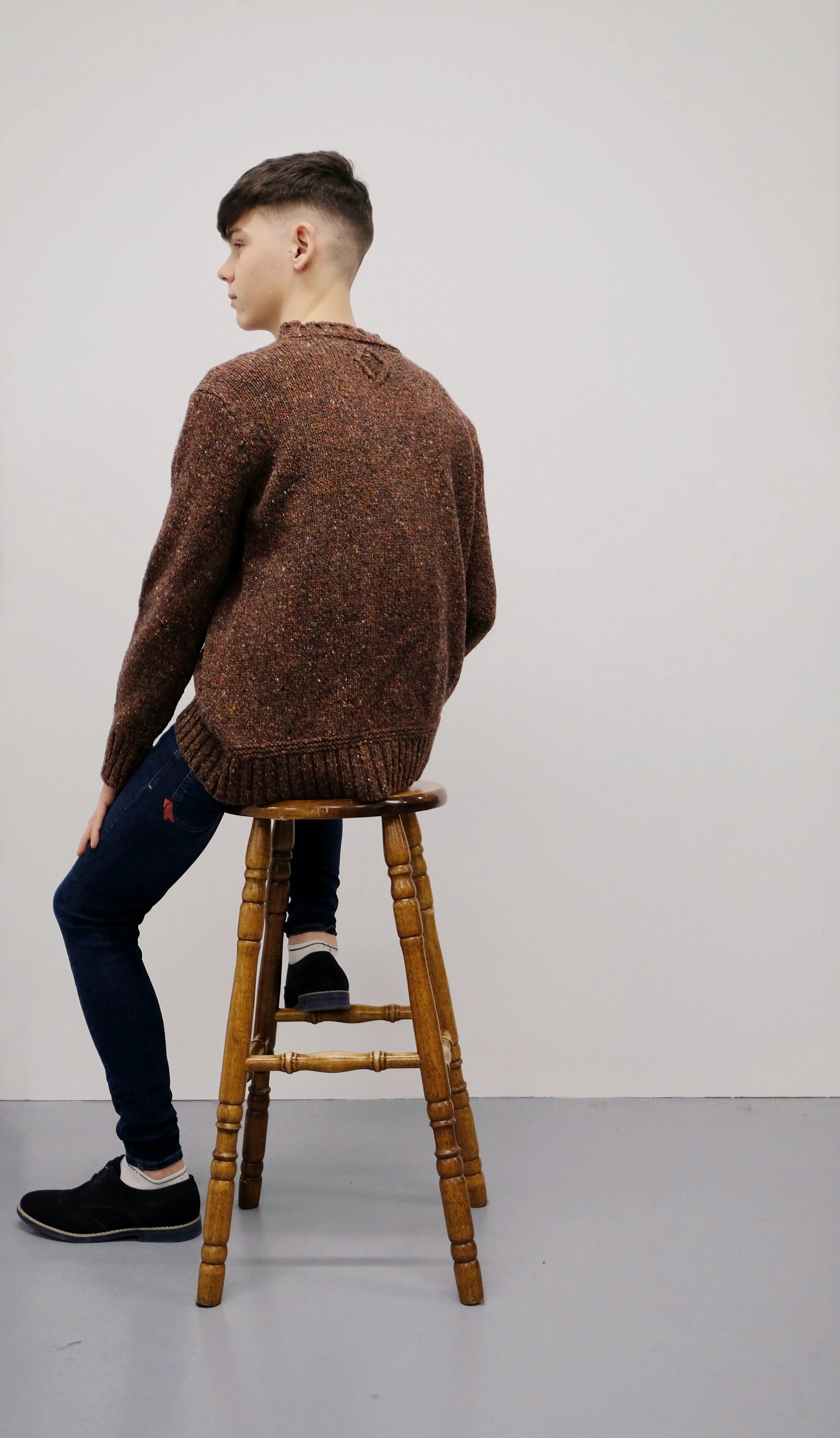 Classic Crew in soft alpaca merino, diamond detail on back of shoulders.