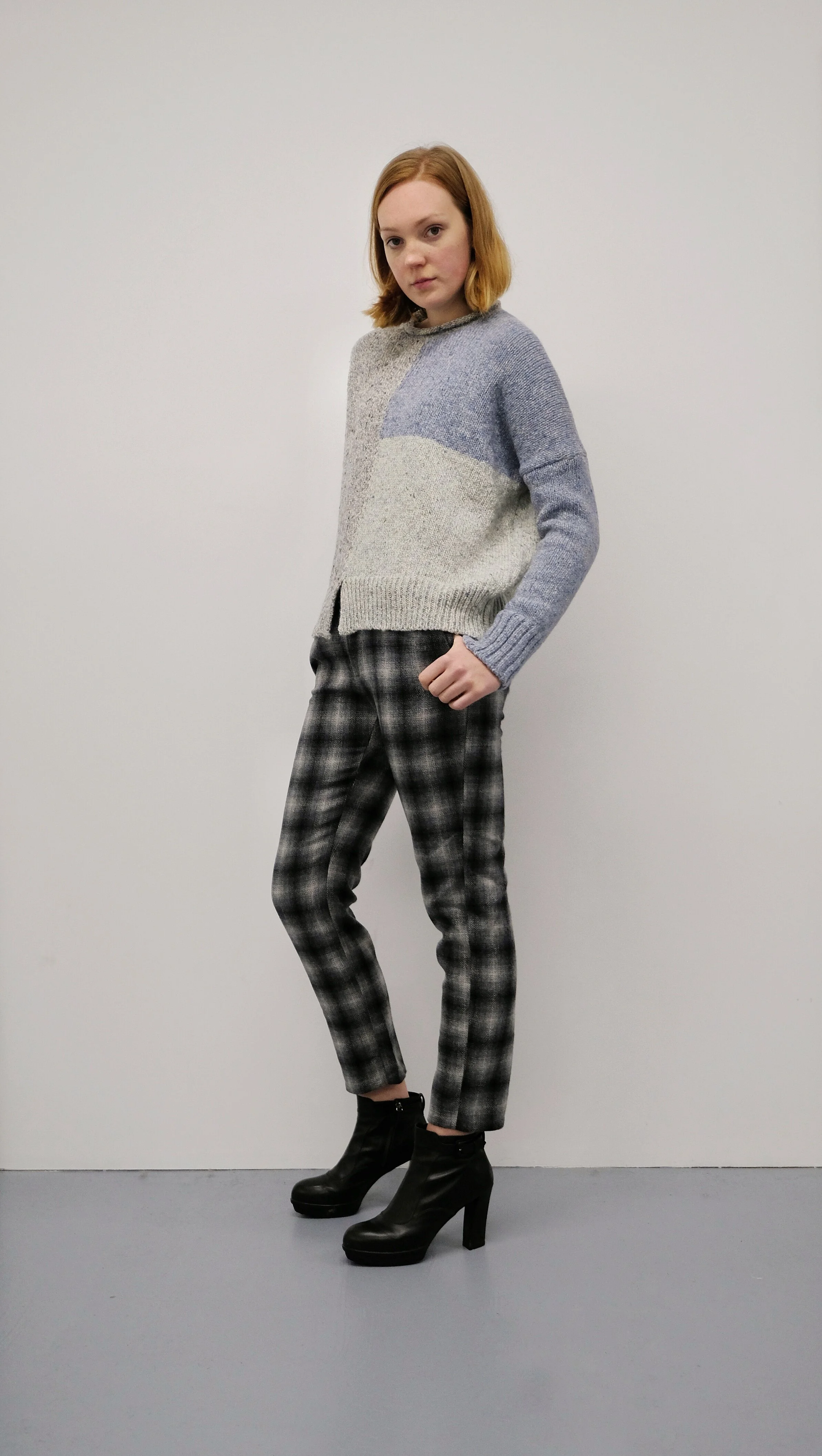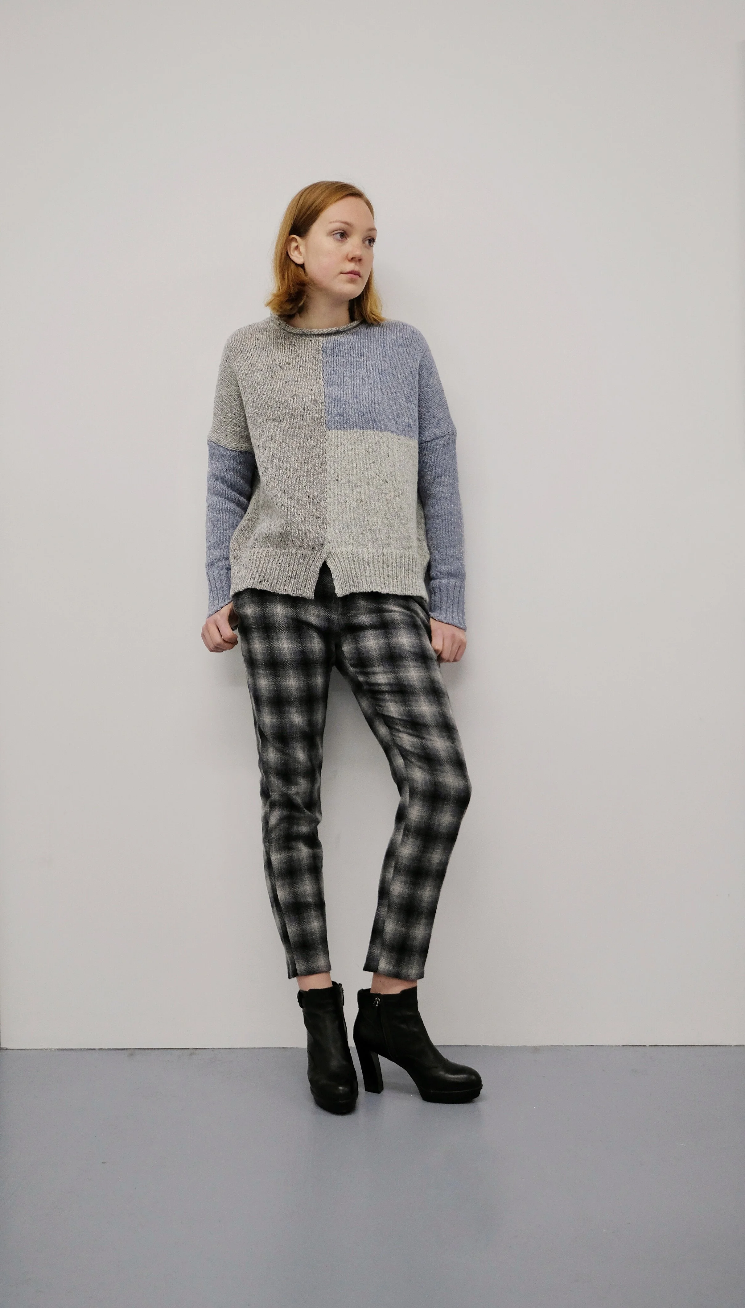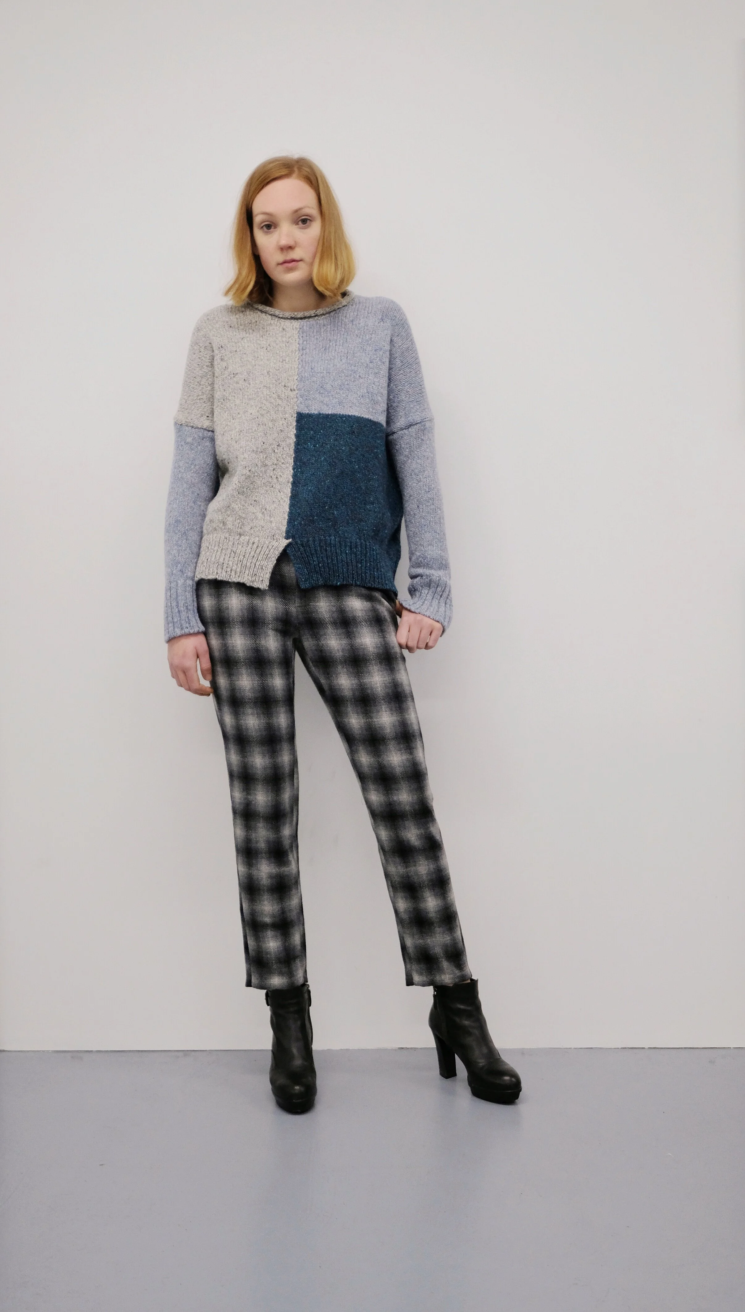 3 Coloured block sweater in alpaca mix, centre front slit detail, in flattering loose fit.